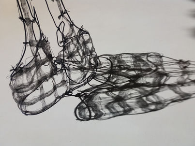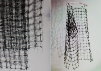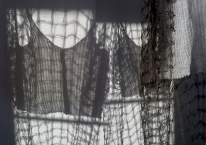 I called this unweaving, deconstruction of linens with mathematical precission, counting in, counting out. Stitching but mostly joining with threads of knots.